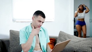 Curly-haired Ebony babe can't get enough of ample milky implement